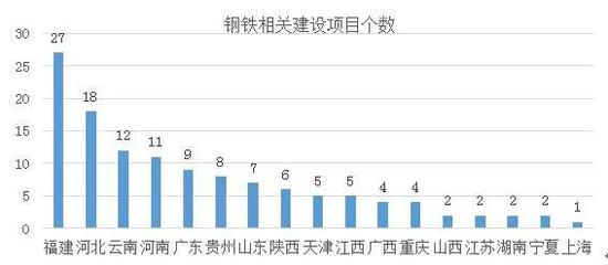 圖1 各省市鋼鐵相關(guān)建設(shè)項目個數(shù)統(tǒng)計圖