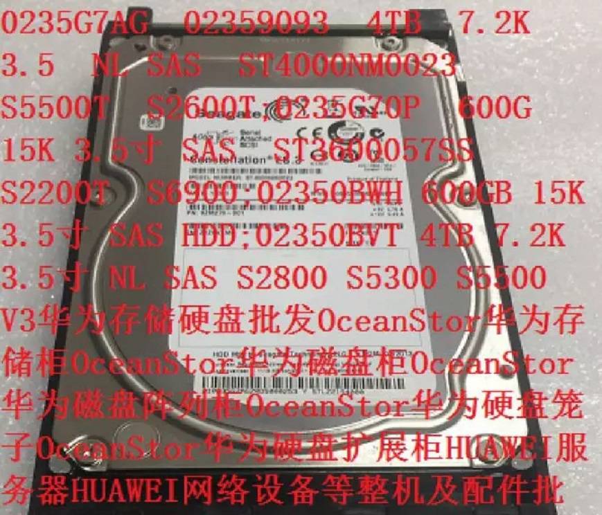 0235G7AG 02359093 4TB 7.2K 3.5 NL SAS ST4000NM0023 S5500T S2600T;0235G70P 600G 15K 3.5寸 SAS ST3600057SS S2200T S6900;02350BWH 600GB 15K 3.5寸 SAS HDD;02350BVT 4TB 7.2K 3.5寸 NL SAS S2800 S5300 S5500 V3華為存儲(chǔ)硬盤批發(fā)OceanStor華為存儲(chǔ)柜OceanStor華為磁盤柜OceanStor華為磁盤陣列柜OceanStor華為硬盤籠子OceanStor華為硬盤擴(kuò)展柜HUAWEI服務(wù)器HUAWEI網(wǎng)絡(luò)設(shè)備等整機(jī)及配件批發(fā)